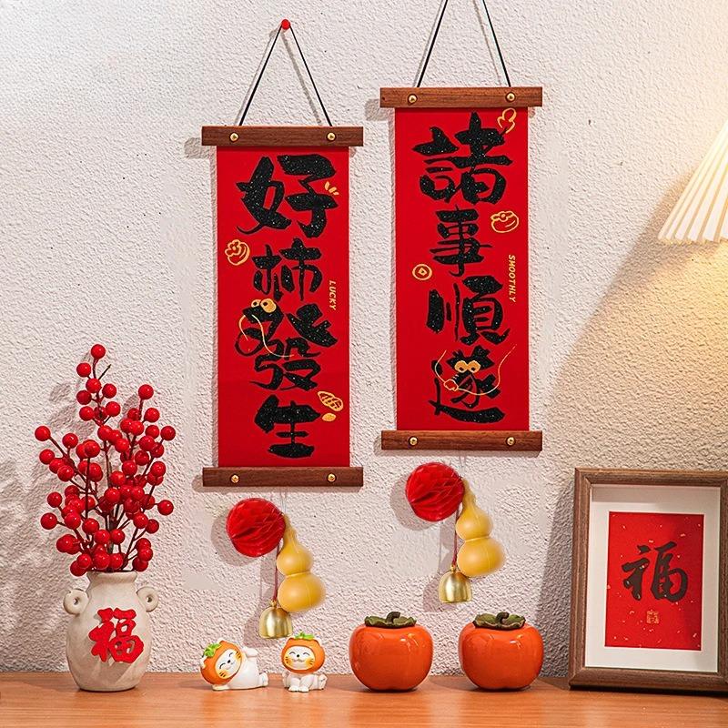 Small Couplets Velvet Fabric Chinese New Year Home Use Lucky Word Stickers Spring Swing Home Door Decoration
