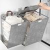Foldable Dirty Laundry Basket with Lid and Handles Fabric Dirty Clothes Hampers Wall Hanging Washing Clothes Mesh Hook Organizer
