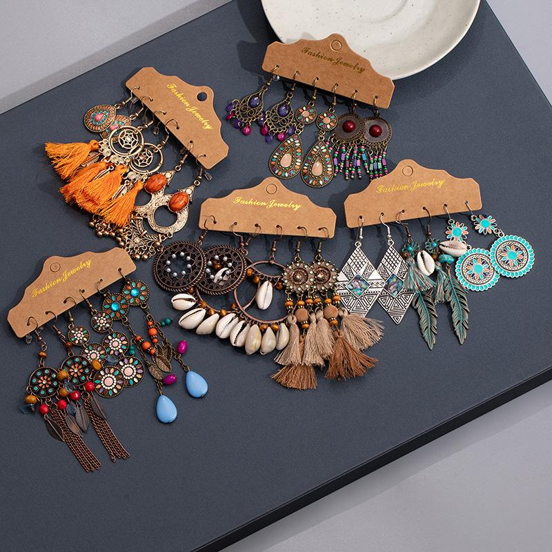 Retro Boheemse Oorbellen Set Etnische Stijl Franje Oorbellen Niche Creatief Veelzijdig Gepersonaliseerde Oorbellen