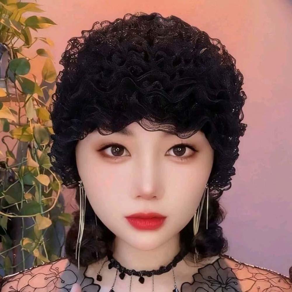 Soft Elastic Curly Hair Hat Breathable Mesh Lace Pullover Cap Beauty Lace Curling Hat for Mom