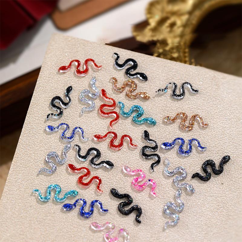 50Pcs Mixed Nail Snake Decorations Ornament Flash Nail Charm Simulation Resin Accessories Diy Manicure Decorations