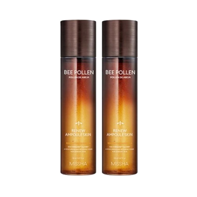 MISSHA Bee Pollen Renew Ampoule Skin is a hydrating ampoule-toner formulated with Bee Pollen Complex, including green propolis and royal jelly extracts.