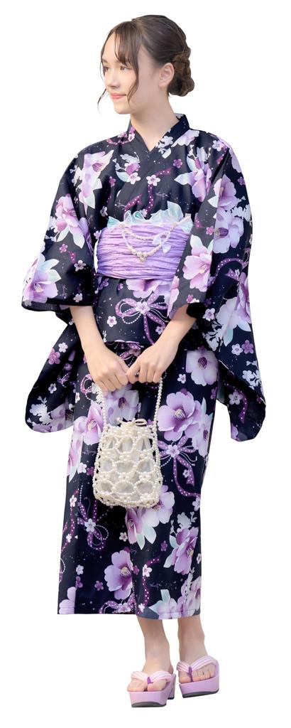 Arisana Yukata for Separate Sizes and 160cm and Watercolor Camellia 130cm Two-Way Girls, Set, 120, 130, 140, 150, (3-Piece Set Top, Dress, Obi),