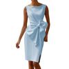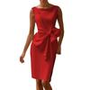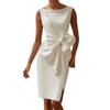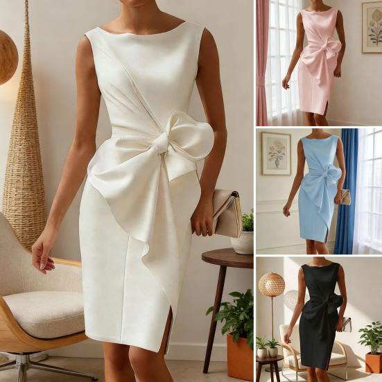 Women Sleeveless Bodycon Dress Ruched Bow Tie Side Slit Midi Dress Lady Formal Cocktail Party Work Dress