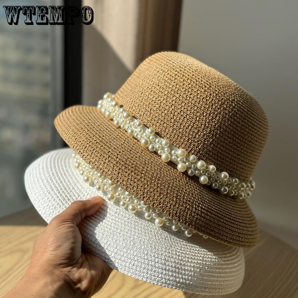 New Summer Travel Female Pearl Straw Hat Beach Sun Casual Sun Hat Summer