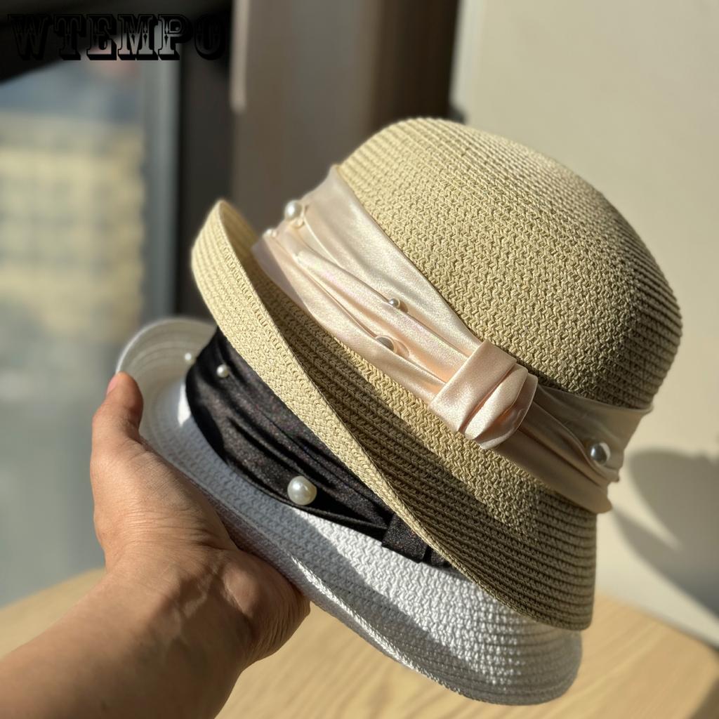 French Pearl Webbing Rolled Up Topper Women's Summer New Beach Seaside Vacation Sun Hat