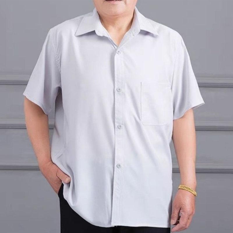 Men's Lightweight Breathable Short Sleeve Shirt Casual Loose Fit Solid Color Button-Down Summer Top for Middle-aged and Elderly
