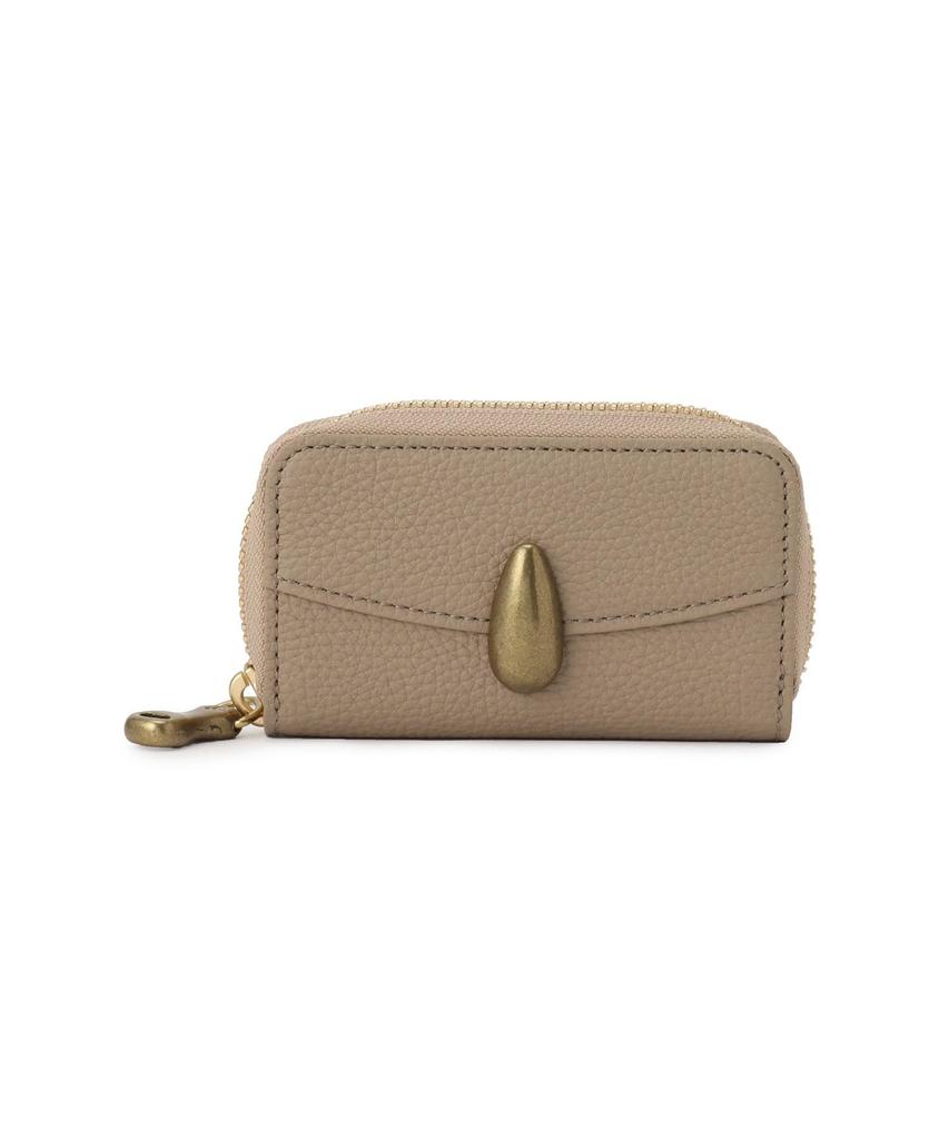Toff & Loadstone Key Round Zip Light Shrink Key Case, Key Charm, Card Case, Cowhide Leather, One Size, Chai Beige