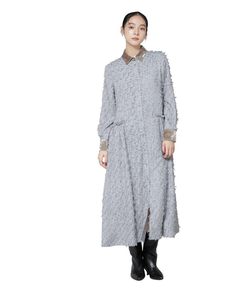 Nano Universe Fringe Jacquard Narrow Shirt Size Dress, Women's, S, 020, Gray, 669-5219326