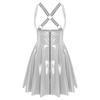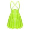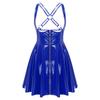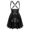 Mouwloze gothic punkjurk voor dames met lage halslijn, ritssluiting aan de voorkant, gekruiste A-lijn en glanzende wet-look, geschikt voor in de club.