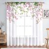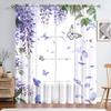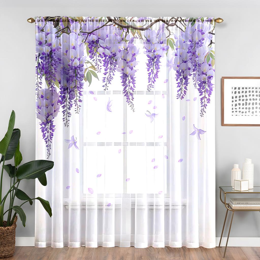 1PC Elegant Wisteria Flower Sheer Curtains - Purple Floral Design with Green Leaves, Rod Pocket Top for Living Room, Kitchen, Bedroom, Balcony