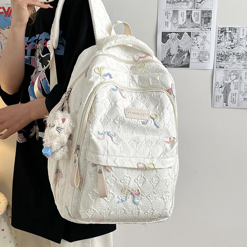 Small fresh schoolbag female cute college student backpack high value bow junior high school student versatile large capacity backpack