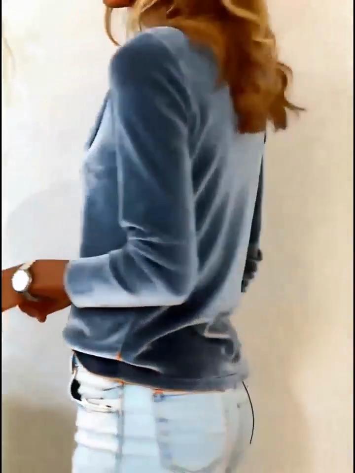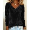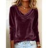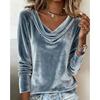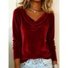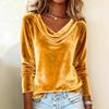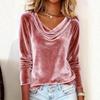 Women's Solid Color Velvet Long Sleeve T-shirt, Sexy Cowl Neck Casual Top