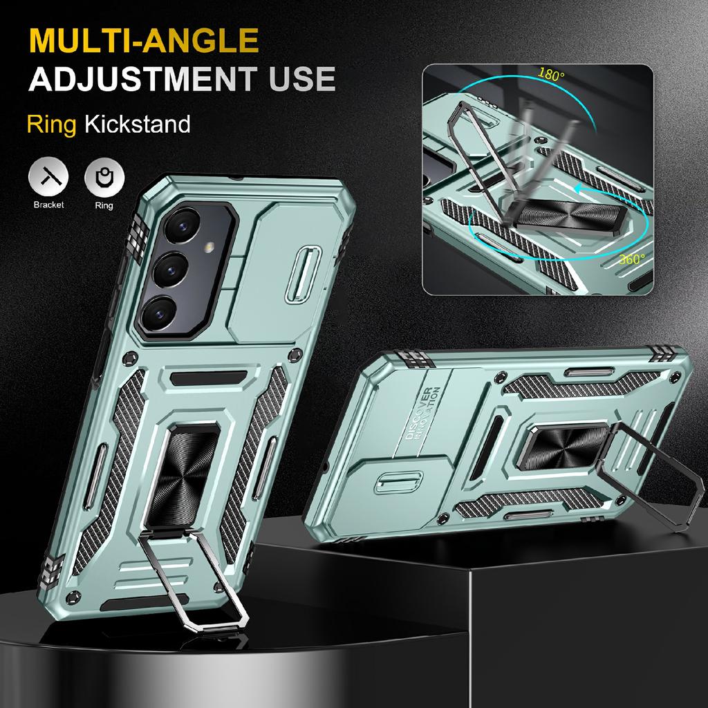 For Samsung Galaxy A16 4G/5G Case Kickstand Slide Lens Lid PC+TPU Drop-Proof Phone Cover
