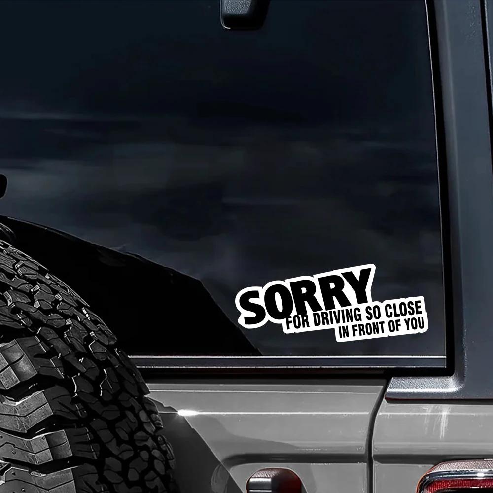 Sorry voor te dichtbij rijden Sticker Auto Vrachtwagen Voorruit Raam Grappige Vinyl Stickers Voorruit Motorfiets Carrosserie Decoratie Accessoires