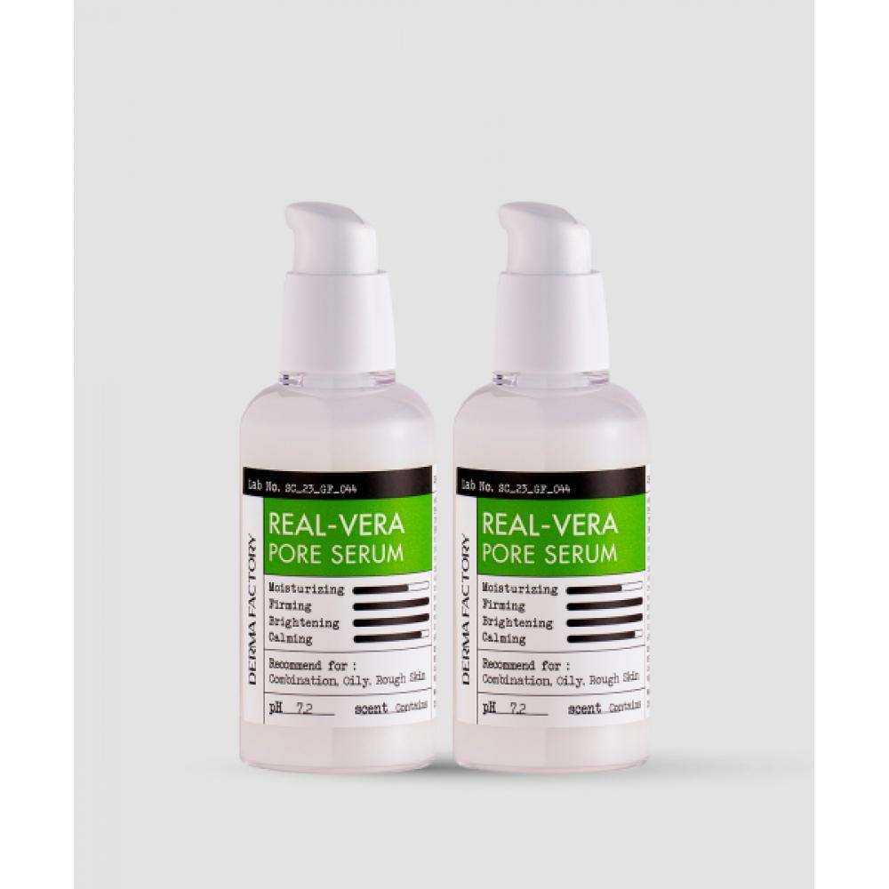 DERMAFACTORY Real Vera Pore Serum 80ml is a pore serum that smooths skin texture and keeps pores firm. With 10% U-active Real vera, it tightens pores, while high-concentration aloe vera extract immediately helps in pore tightening. It contains 69% bifida fermentation filtrate, which helps smooth skin texture and enhance elasticity. This serum excels in hydrating and soothing the skin, providing a refreshing experience perfect for summer use.