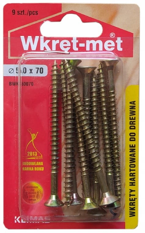 Geharde houtschroeven 5x70mm 9stuks PZ2 goud