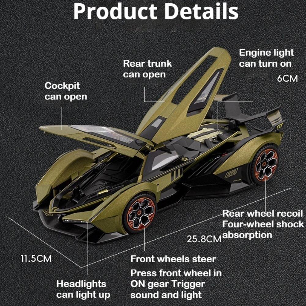 Scale 1:18 SVJ63 V12 Sport Car Model Toy Metal Diecast Music Light Shock Absorption Models Wheel Steering Supercar Gifts for Boy