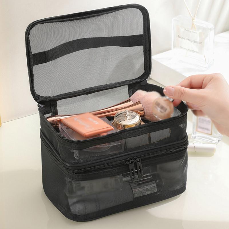 Double Layer Mesh Makeup Bag, Wash Bag, Women's Portable New Large Capacity Storage Bag, Cosmetics Storage Bag