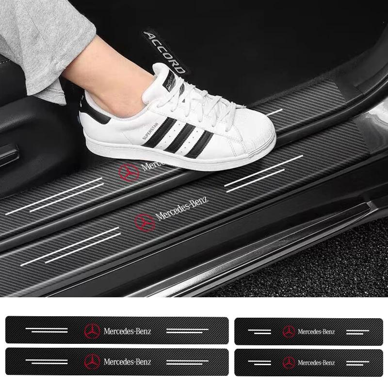 4 stuks Koolstofvezel Krasbestendig Schuurpedaal Auto Deurplint Beschermer Stickers Voor Mercedes Benz AMG W124 W202 W203 W204 W210 W211