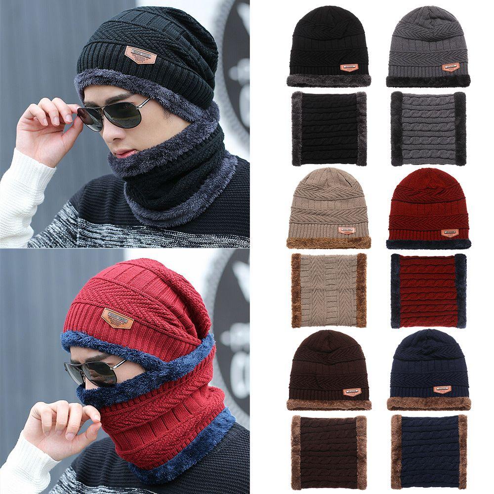 Fashion Elastic Adult Women Men Soft Scarf Hats Set Beanie Hat Thick Warm Knitted Cap