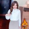 Women's Autumn/Winter Slim Fit Lace Stand Collar Shirt with Velvet Tummy Covering Top