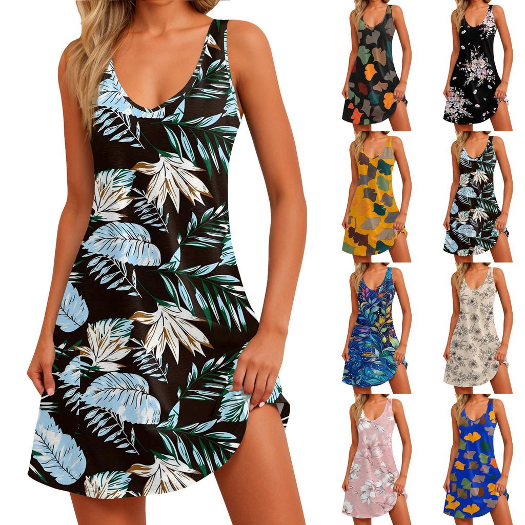 Dames casual zonnejurk met zakken Zomer Boho strandjurk Bloemenblouses voor dames T-shirts Jurk V-hals Losse tankjurken