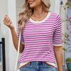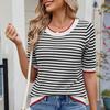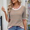 Zomer Dames Gestreept Gebreid Kortmouwig T-shirt IJszijde Kleurcontrast College Stijl Top