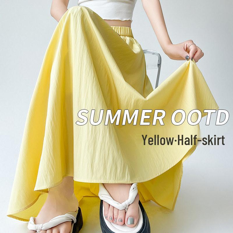 Embrace effortless elegance with this women's high-waist skirt, perfect for summer outings. Crafted from lightweight polyester, it offers a luxurious ice silk feel that drapes beautifully. The solid yellow color adds a vibrant touch, while the slimming A-line design flatters your silhouette. Its pleated structure enhances the skirt's fashionable appeal, making it a versatile addition to your wardrobe. Ideal for any occasion, this skirt provides both style and comfort with its chic and modern design.