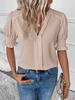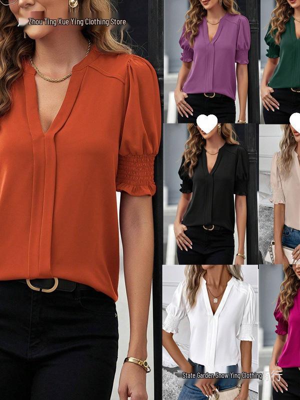 Women's Summer V-Neck Puff Sleeve Solid Color Top