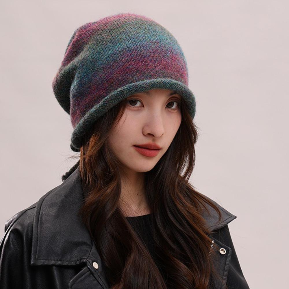 Gradient Color Bonnet Hat Large Size Drawstring Slouch Hat Fashion Beanies Skullies