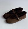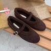 Wool Mary Janes Women Flats Heels Lambs Fur Shoes Ladies Belt Buckle Furry Ballerines Cozy Warm Loafers Female