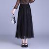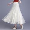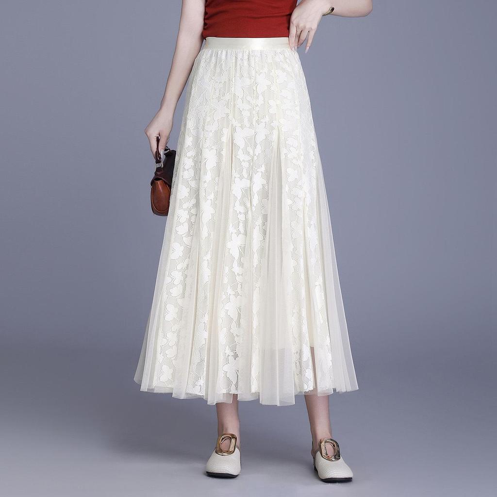 A-line Midi Skirt: High Waist Mesh Lace Patchwork for Women - Spring/Summer 2026