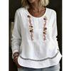 Ervaar moeiteloze elegantie met dit Dames Katoen Linnen Kantafwerking Pullover Shirt. Gemaakt van een hoogwaardige mix van katoen en linnen, biedt dit shirt een losse pasvorm en een slubkatoen textuur voor ultiem comfort en ademend vermogen.. Met een ontwerp met lange mouwen en een flatterende V-hals voegt de effen kleur een vleugje verfijning toe aan elke outfit.. Het kanten randje versterkt de vrouwelijke aantrekkingskracht, waardoor het een veelzijdige toevoeging aan je garderobe is.. Perfect voor zowel casual als nette gelegenheden, dit pullover shirt belooft een chique en tijdloze stijl.