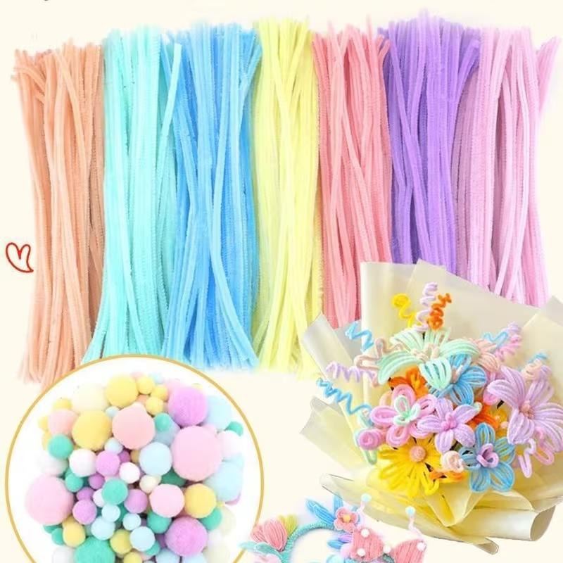 100-1000PCSMacaronColor ChenilleStems DIY Craft Pipe Cleaners for Kids Handmade Bouquet Hairband Flower Arrangement Stem Tie Kit