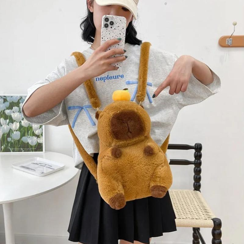 Capybara Dolphin Plush Backpack Cute Stuffed Toy Shoulder Bag Dual UseTote for Kids Girls Daily Travel Gift Valentine's Day Gift