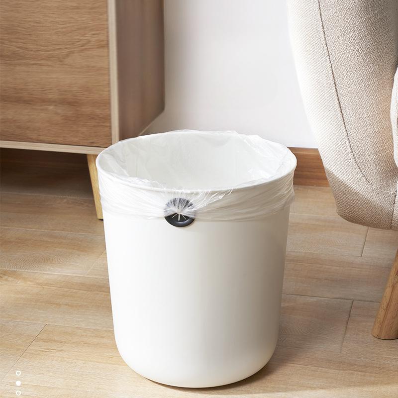 Minimalist White Round Trash Can No Lid With Round Hole For Securing Trash Bag Waste Paper Basket Living Room Household Use