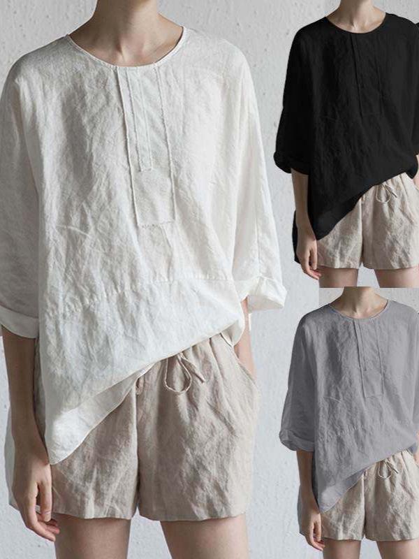 This stylish top is a perfect addition to your spring and summer wardrobe, offering a harmonious blend of comfort and elegance. Made from pure cotton, it offers a breathable and lightweight feel, ideal for warmer weather. The top features a round neckline and mid-length sleeves, providing a relaxed yet chic look. The unique patchwork and quilted details add a touch of sophistication, making it versatile for both casual outings and semi-formal occasions. With its loose fit, this top ensures ease of movement and comfort throughout your day.