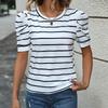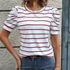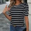 Discover the perfect blend of simplicity and style with the Summer 2026 New Arrivals: Simple Style Puff Sleeve Striped Women's T-shirt. Made from smooth polyester fabric, this T-shirt offers a comfortable fit and a breezy feel, making it ideal for warm weather. Featuring short puff sleeves and a classic round neckline, this striped tee adds a touch of elegance to your casual wear. Perfect for pairing with your favorite jeans or shorts, it's a versatile addition to any summer wardrobe.