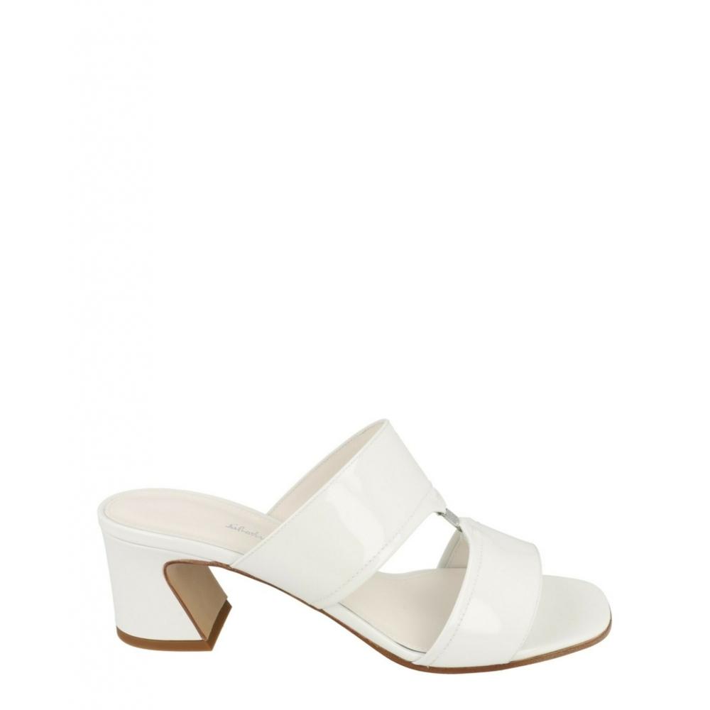 Salvatore Ferragamo Tot 55 Patent Leather Sandals White