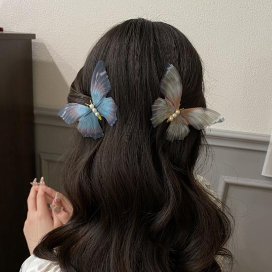 1 Pair Women Hairpin Gauze Butterflies Decor Hair Clips Retro Style Non-slip Durable Hairpin Hair Accessories