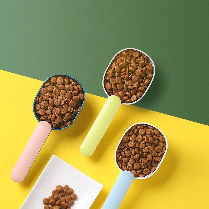 Pet Food Scoop Cat Food Dedicated Measuring Spoon Pet Food Shovel with Handle Closure Clip Multifunctional Pet Feeding Spoon