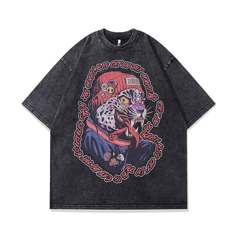 American Hip Hop Cartoon Print Half-Sleeve T-Shirt Men'S Vintage Hip-Hop Loose Short-Sleeved Tee