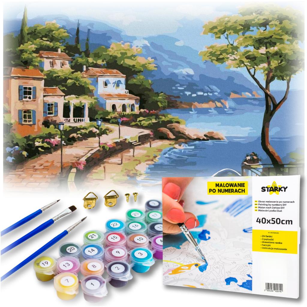 Paint by numbers picture with frame paints brushes coast creative set