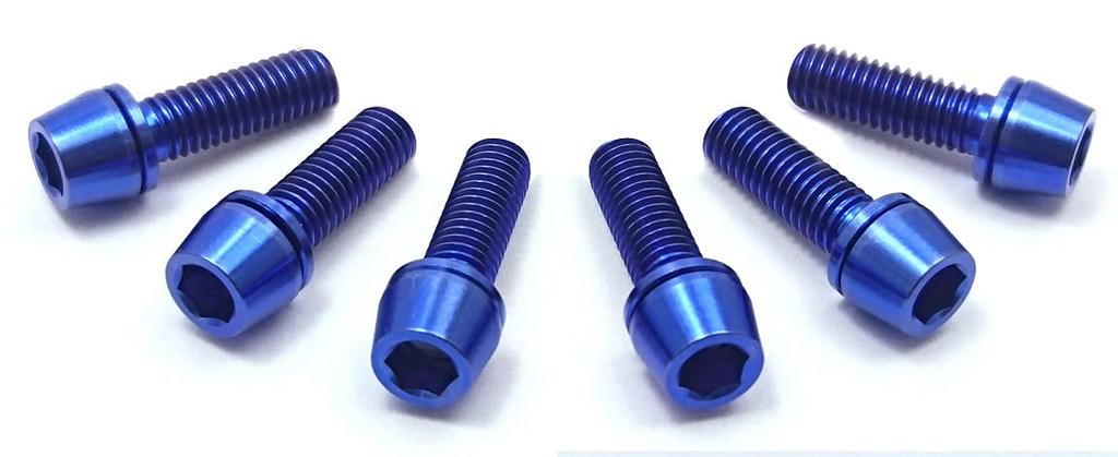 EGWORKS 64 Titanium Bolts for with Sunset Blue of High-Strength ULTRA-Ti™ Stems, M5/16mm Washers, (Set 6)