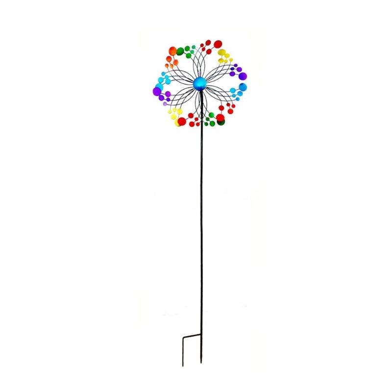 Iron Flower Windmill Toy Garden Spinner for Windmill Yard Garden Balcony Vertical Rainbow Windmill Spinner