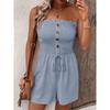 Summer Fashion Splicing Women's Solid Color Sexy Sleeveless Button Tie Waist Casual Comfortable Jumpsuit Shorts