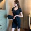 Sexy solid color dress slim split hip skirt deep neck low cut backless bar skirt Spice girls dress women