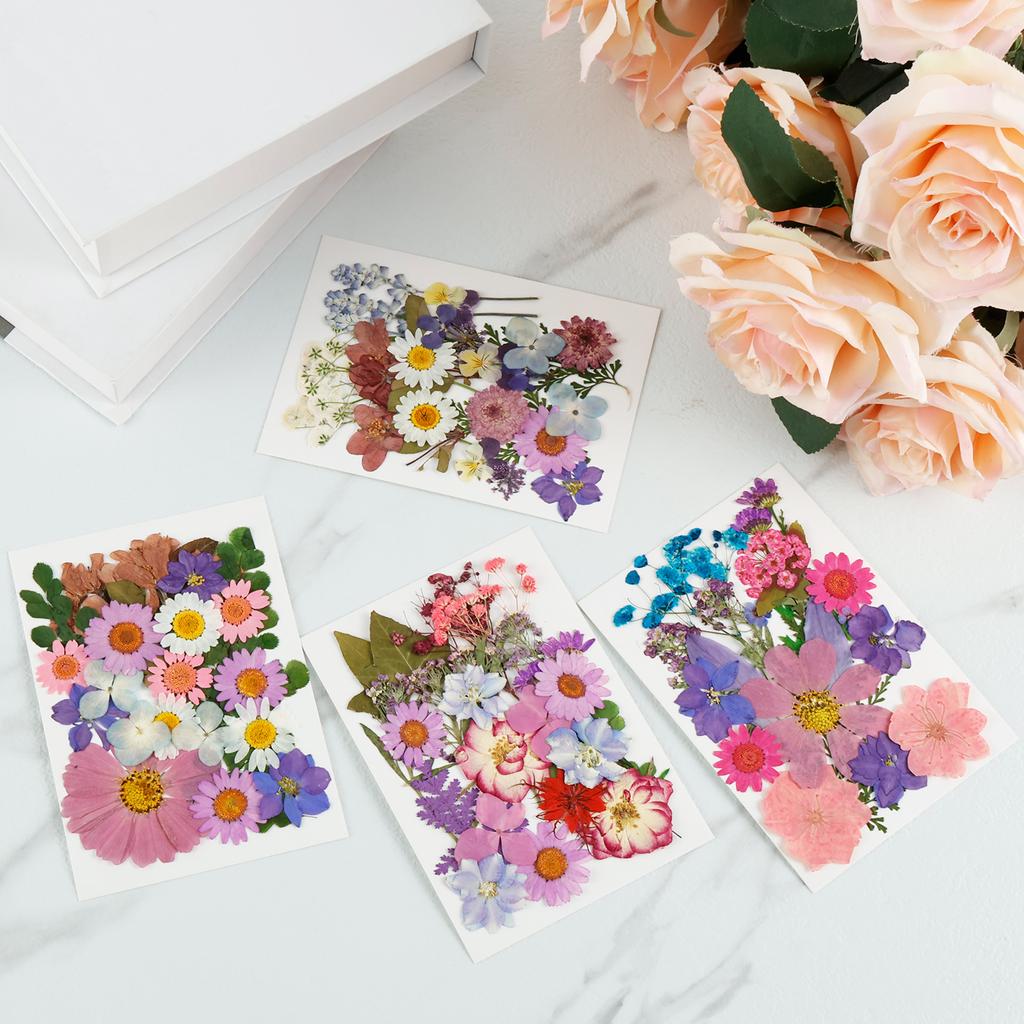 4Sheets Dried Flower DIY Bulk Scrapbooking Pressed Flower Resin Art Crafts Natural Dry Pressed Flowers Decor for Ornament Making