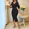 Plus Size Elegant V-neck Off-the-Shoulder Slit Dress for Christmas Party